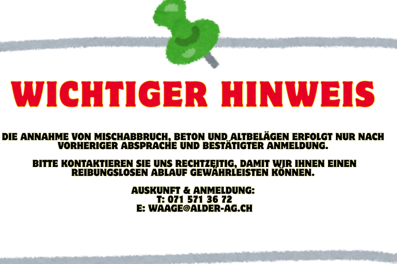 Fallen Abfälle an, können wir ebenfalls dienen. Bei unserem in Affeltrangen stationierten Entsorgungshof können vielerlei Materialien entsorgt und für die weitere Aufbereitung abgegeben werden.